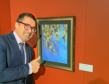 2期にわたって開催された本展では、展示作品とともに、作品をラベルに配した記念ワインを展示。前期初日から多くのご来場者があり、レオナルド・ダ・ヴィンチ・パークのディレクター、ガエル・イブラムサ氏からも多くの賛辞を頂戴できました。