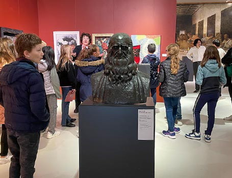 展示会場に飾られるレオナルド・ダ・ヴィンチの胸像